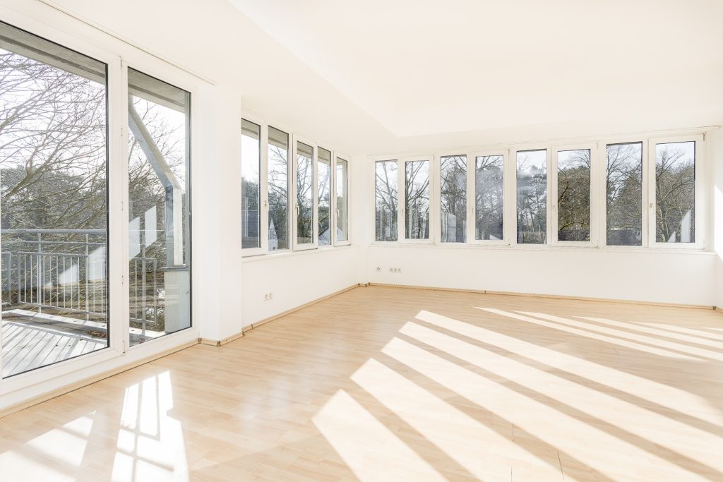 • moderne und teils bodentiefe Fenster, Erker, Laminatboden